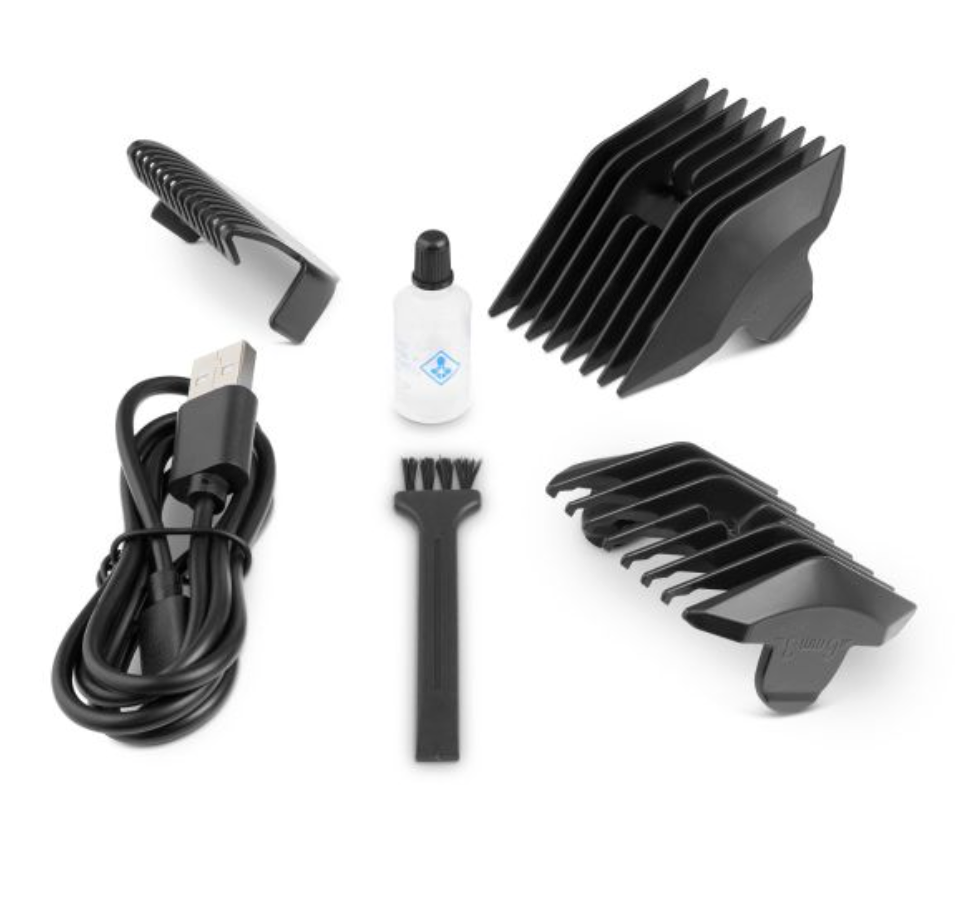 • INCLUDES – body trimmer, USB-C cable, charging base, cleaning brush, oil bottle, and 2 comb attachments (1-10mm and 11-20mm)