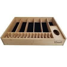 • Removable bamboo compartment with 2 hook latches: 6 tall pockets, 12 short pockets, foam padded lid for security.